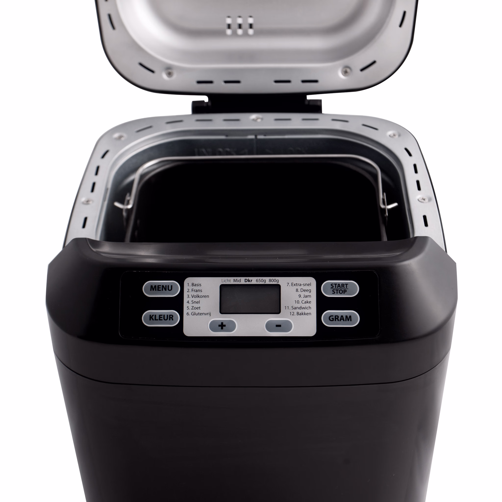 De Inventum broodbakmachine BM55 is geschikt voor maximaal 800 gram brood. De broodbakmachine heeft 12 automatische programma’s, bijvoorbeeld voor het maken van jam en glutenvrij brood. Doe de ingrediënten in het bakblik, stel het juiste programma in en laat de broodbakmachine het werk doen. Kneden, mengen, rijzen en bakken, alles gaat volledig automatisch. Door de instelbare timer kun je het programma’s nachts laten beginnen, zodat je ’s ochtends kunt genieten van vers gebakken brood.